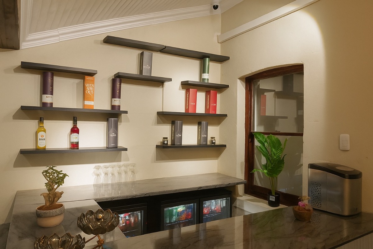 1 double bed (ideal for couples or solo travelers). A shared kitchen for self-catering and a bar and restaurant for in-house catering.